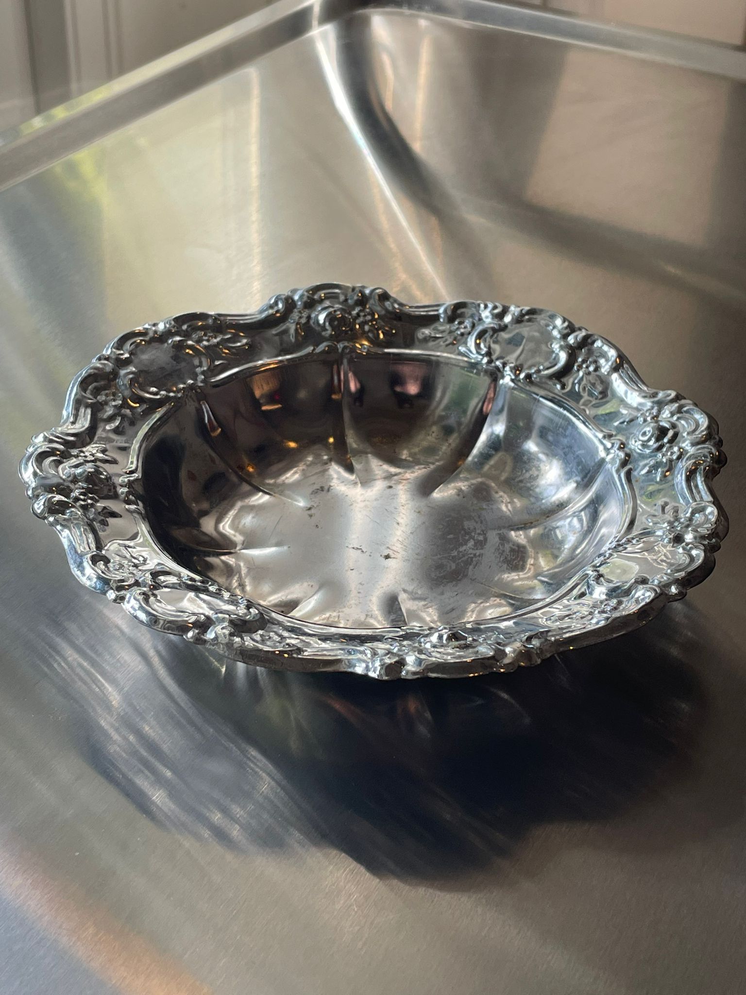 Silver-Plated Metal Bowl with Rococo Ornamentation