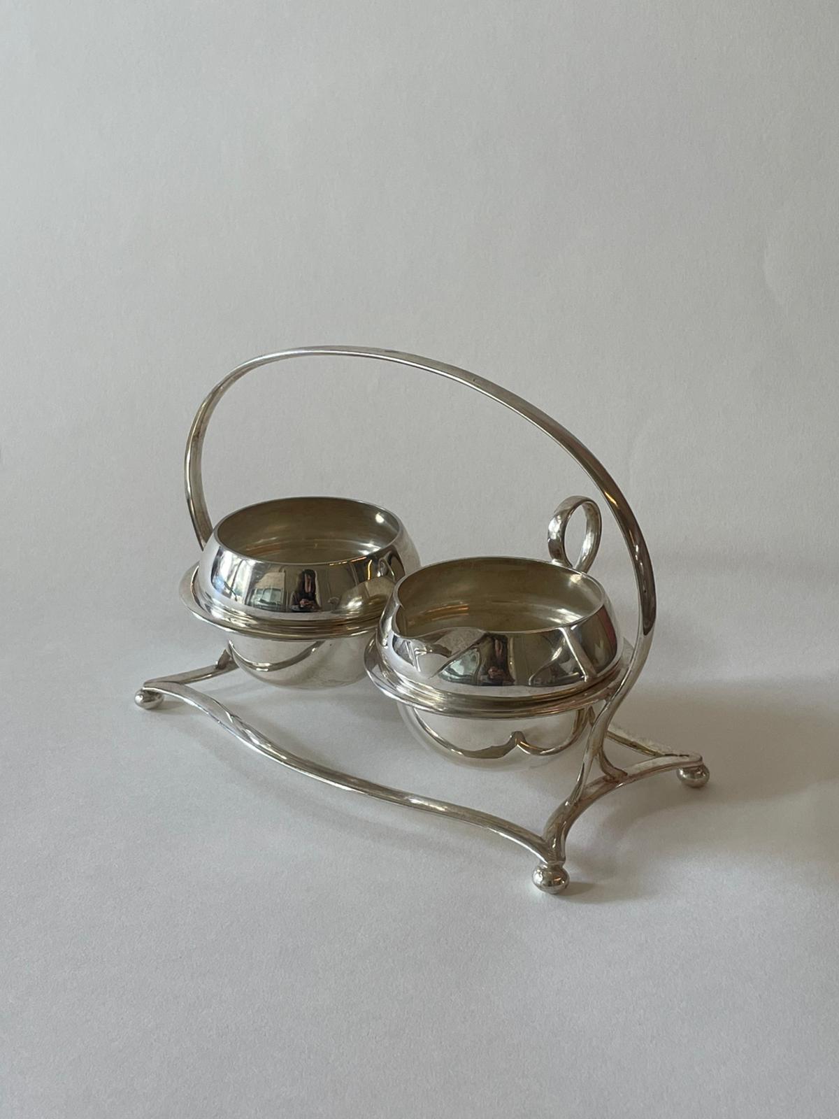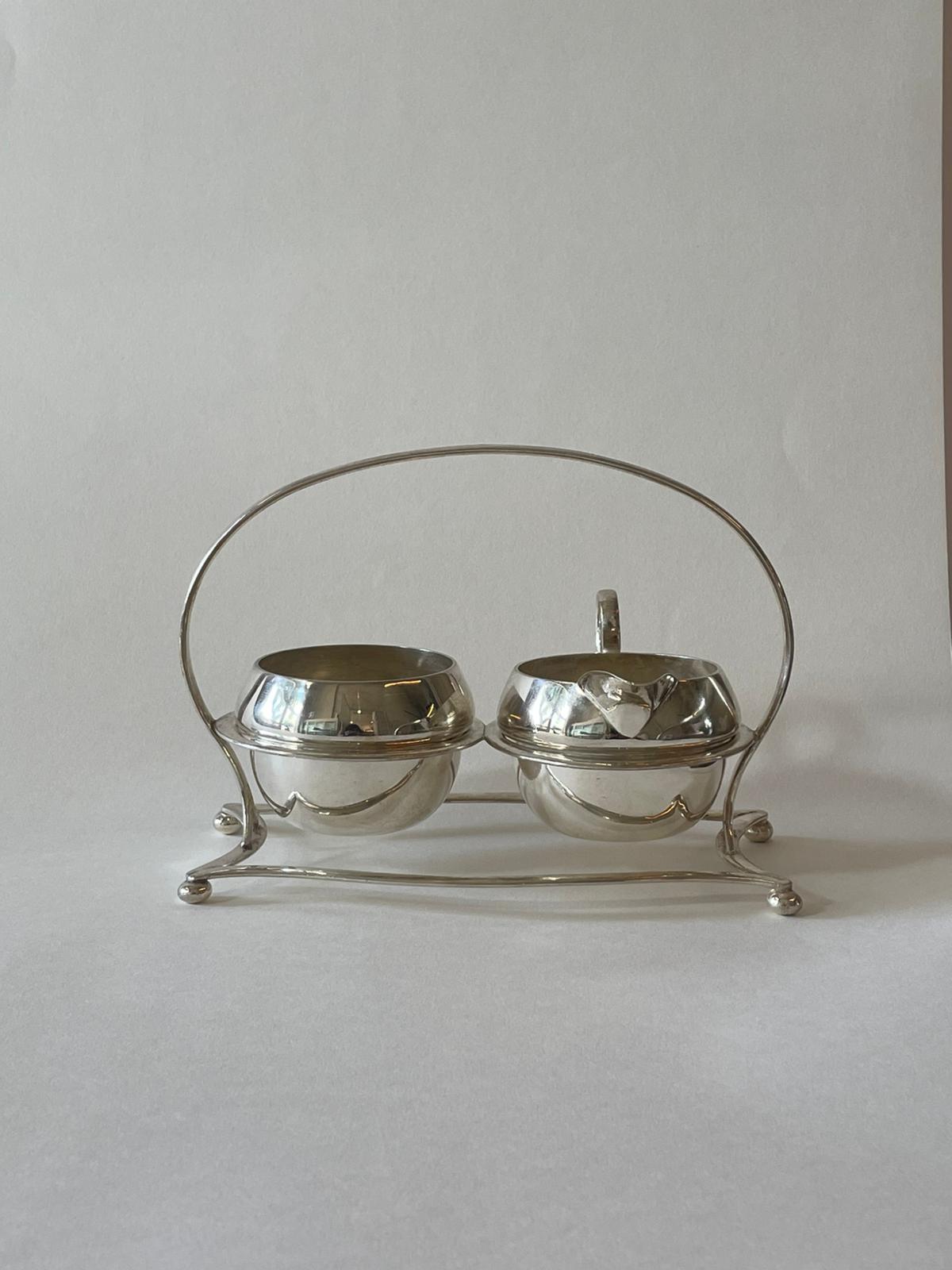 סט כלי סוכר וחלב מוכסף עם ידית נשיאה