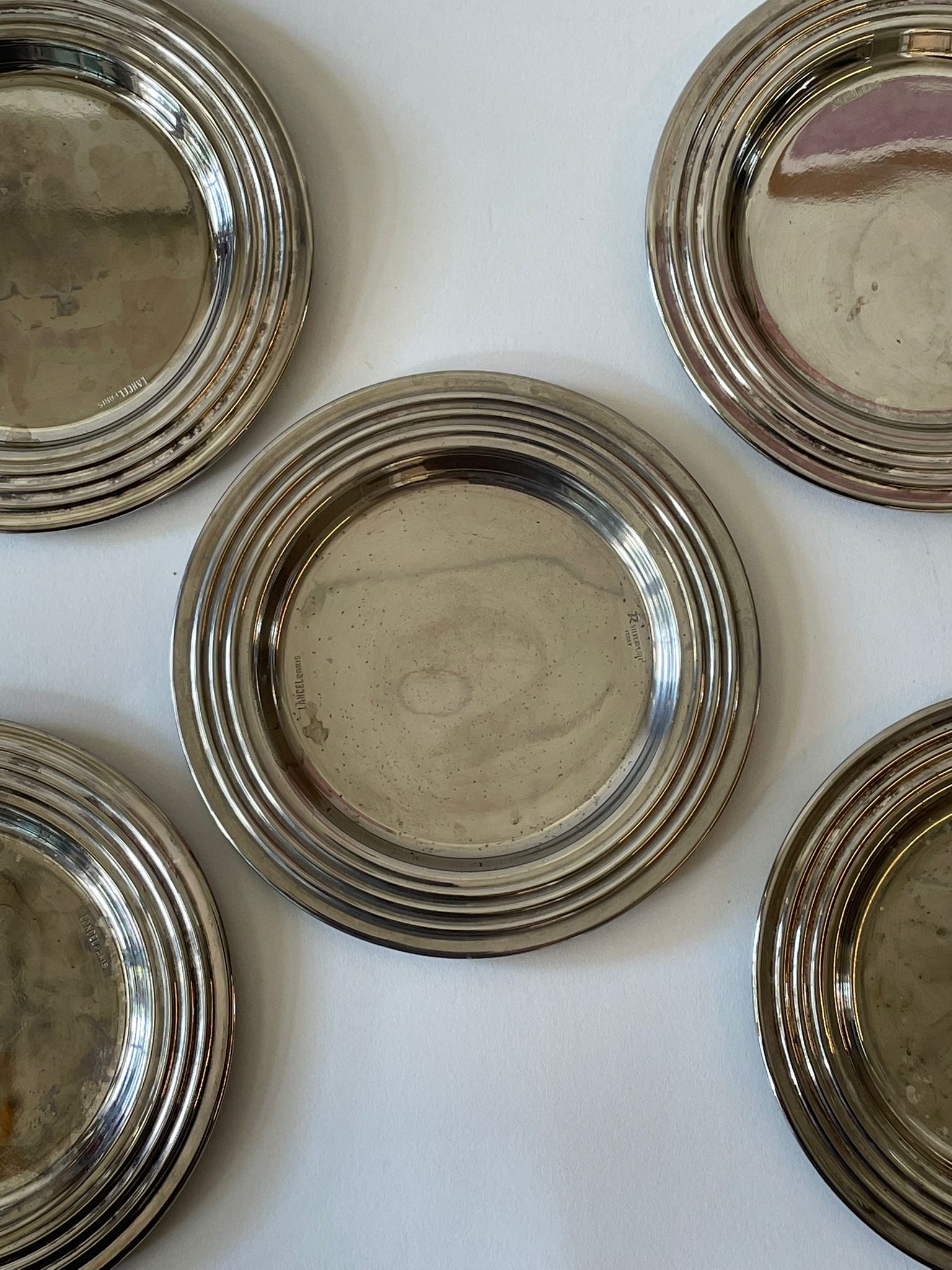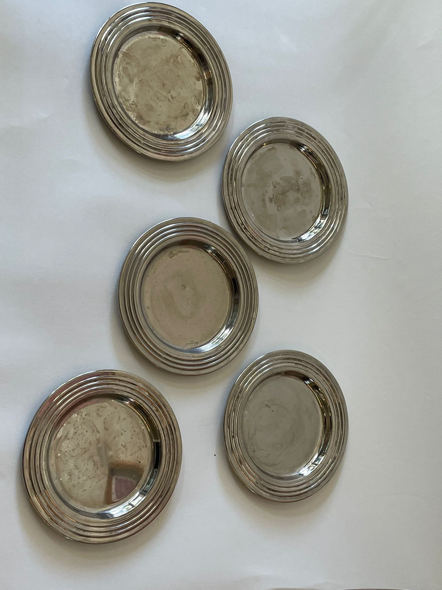 סט תחתיות אלגנטיות ממתכת מוכספת, בעלות שוליים מדורגים היוצרים מסגרת מעגלית עשירה אך מאופקת. המבנה הרב־שכבתי משקף אור בעדינות ומעניק לפריטים עומק ונוכחות על-זמנית, המשתלבים בקלות בכל סגנון אירוח — קלאסי, מודרני או אקלקטי.