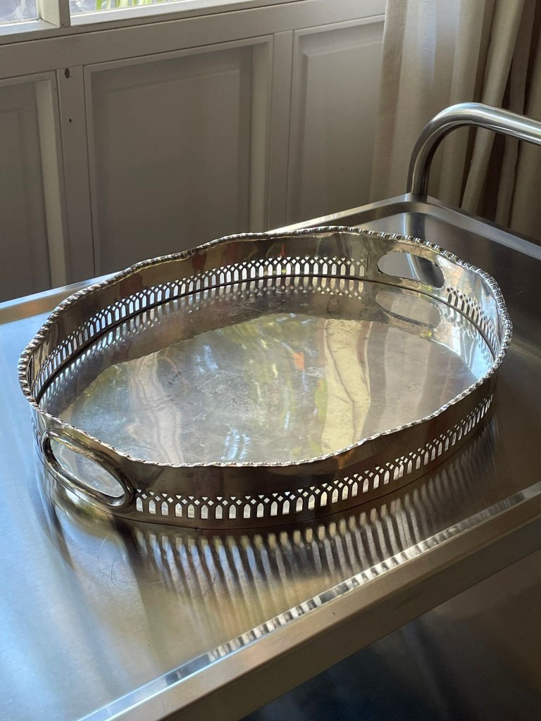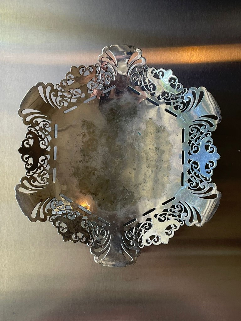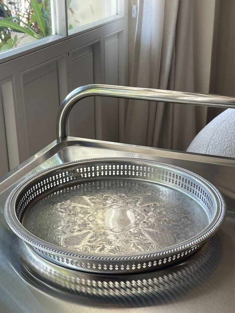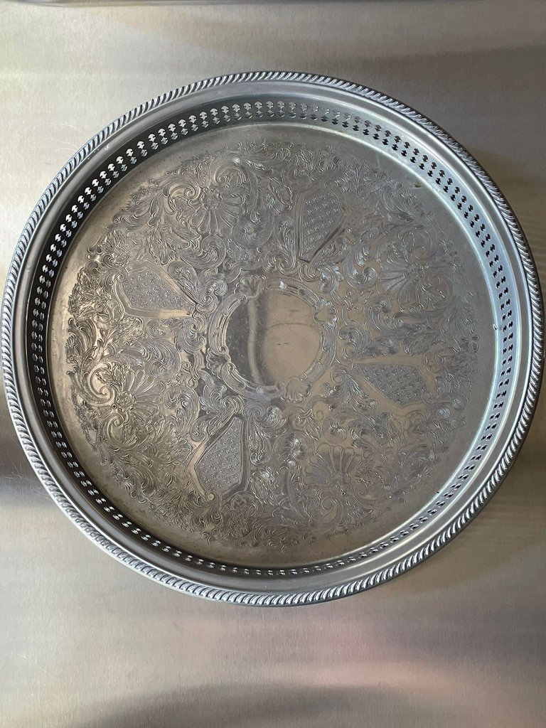 מגש מתכת מצופה כסף בעיטור מחורר
