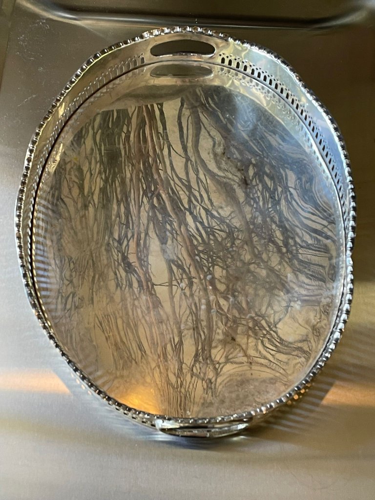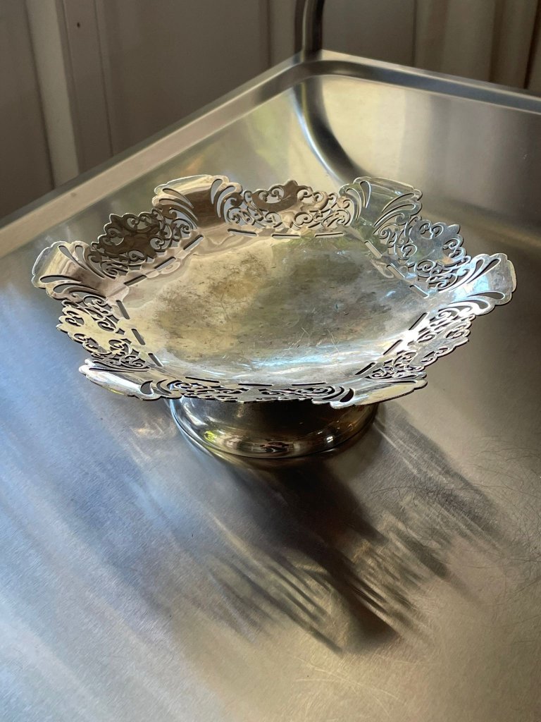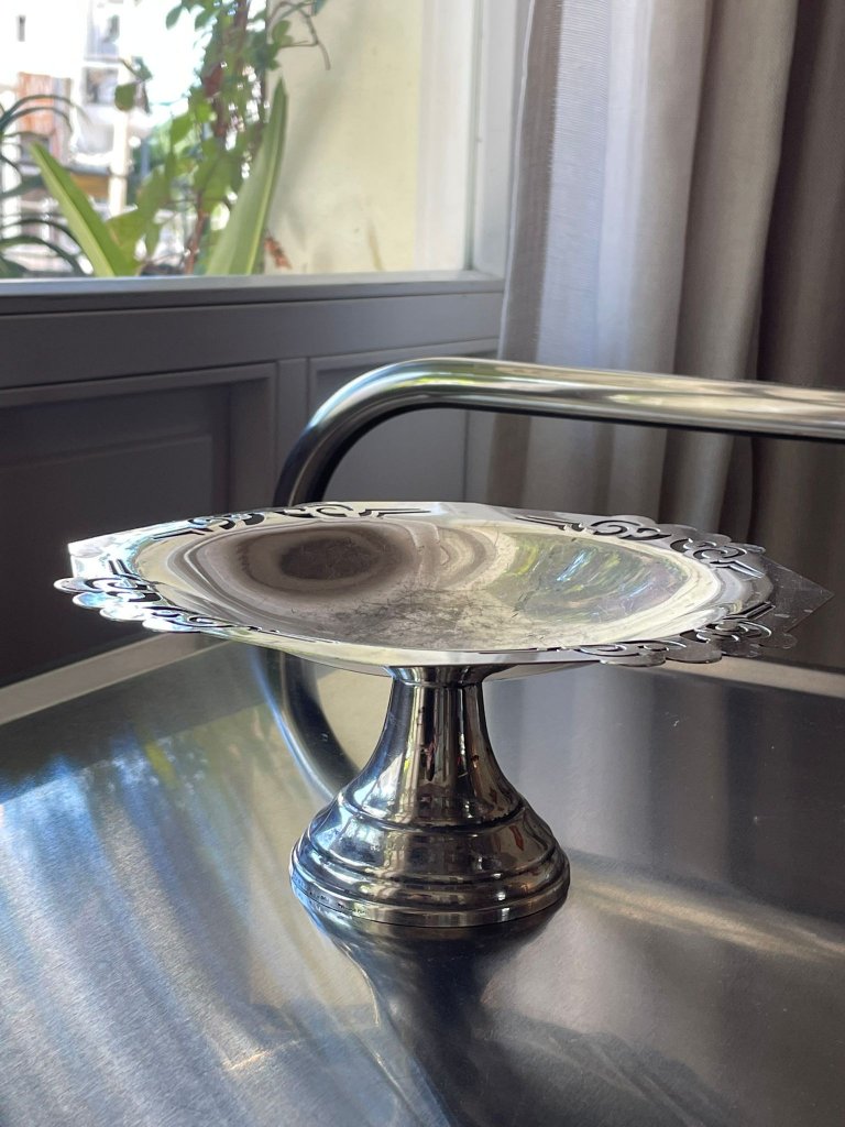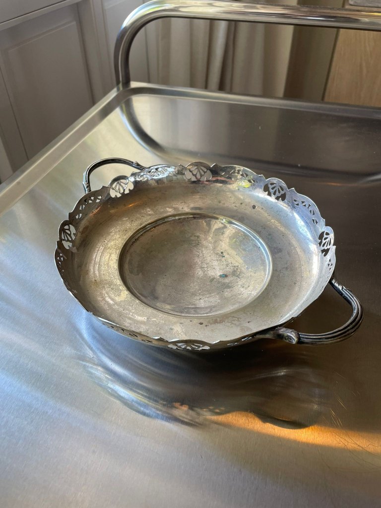 מגש מתכת מצופה כסף בעיטור מחורר