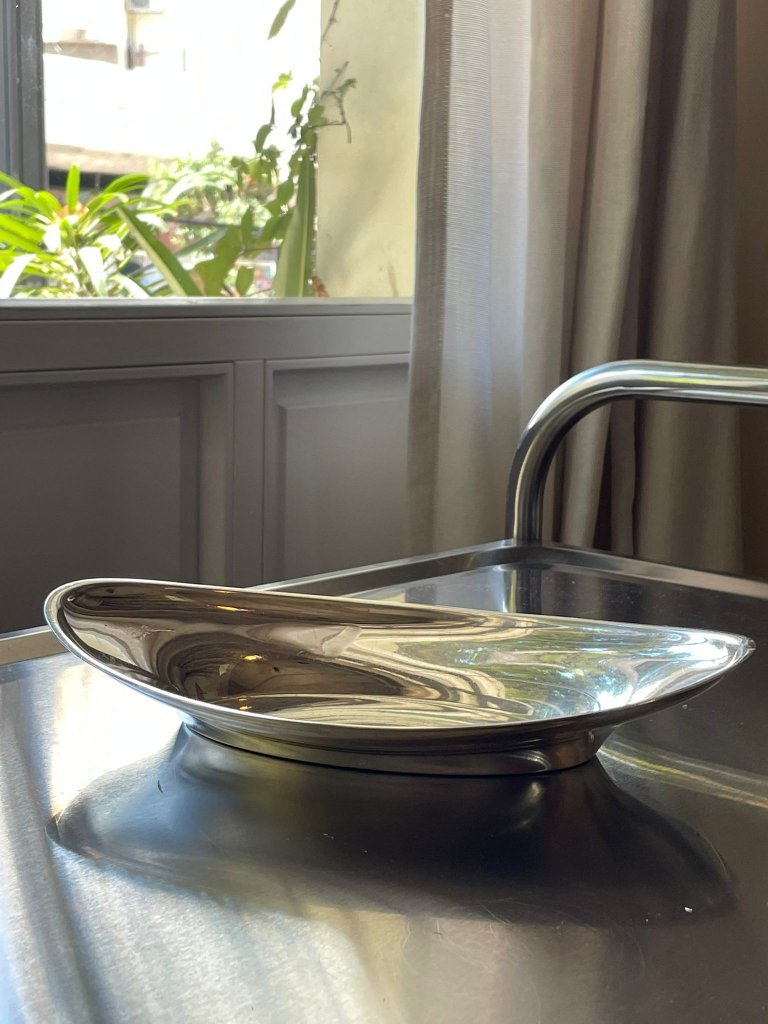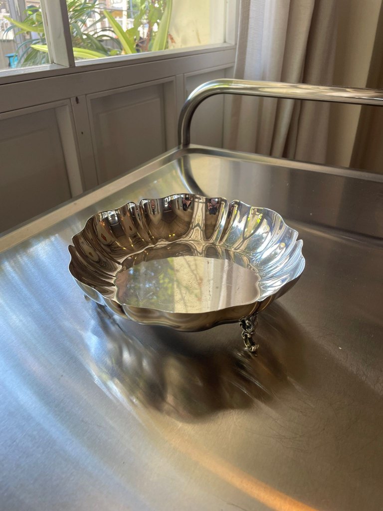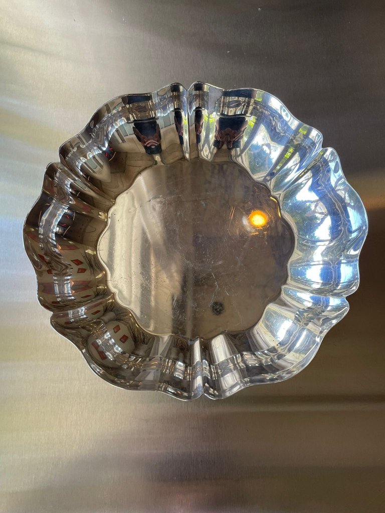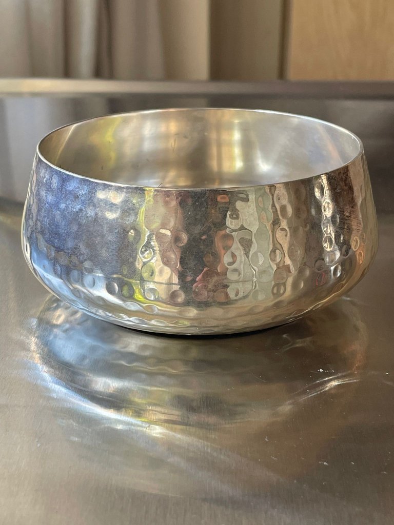 קערת מתכת מצופה כסף בעיצוב מודרני