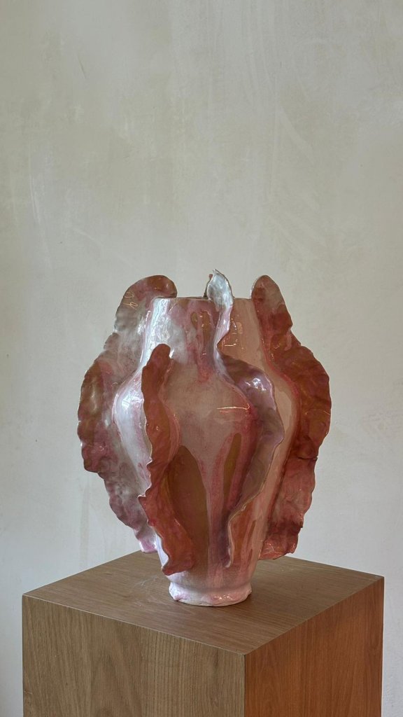 אגרטל קרמיקה ורוד בעבודת יד – אלינה בזק