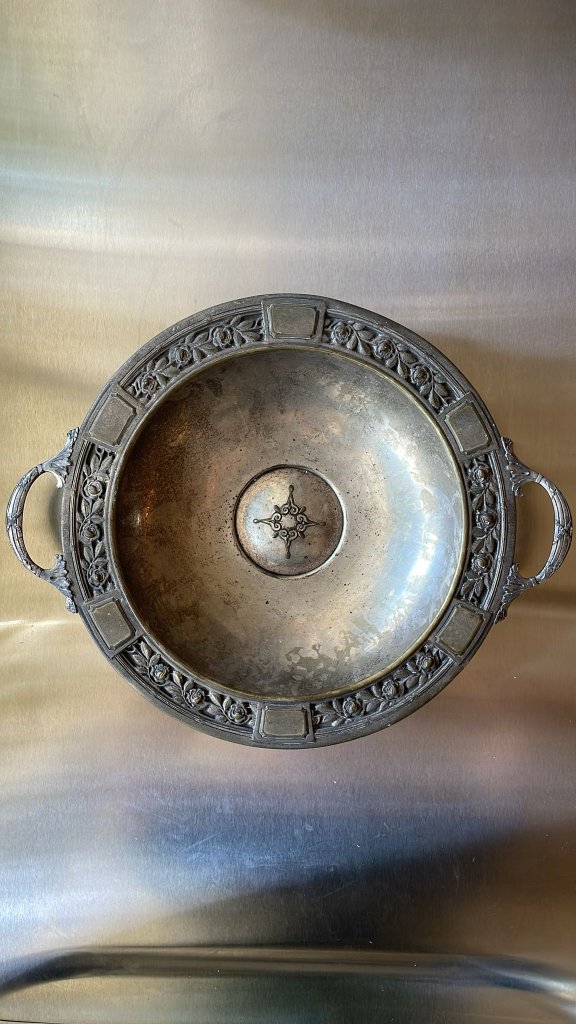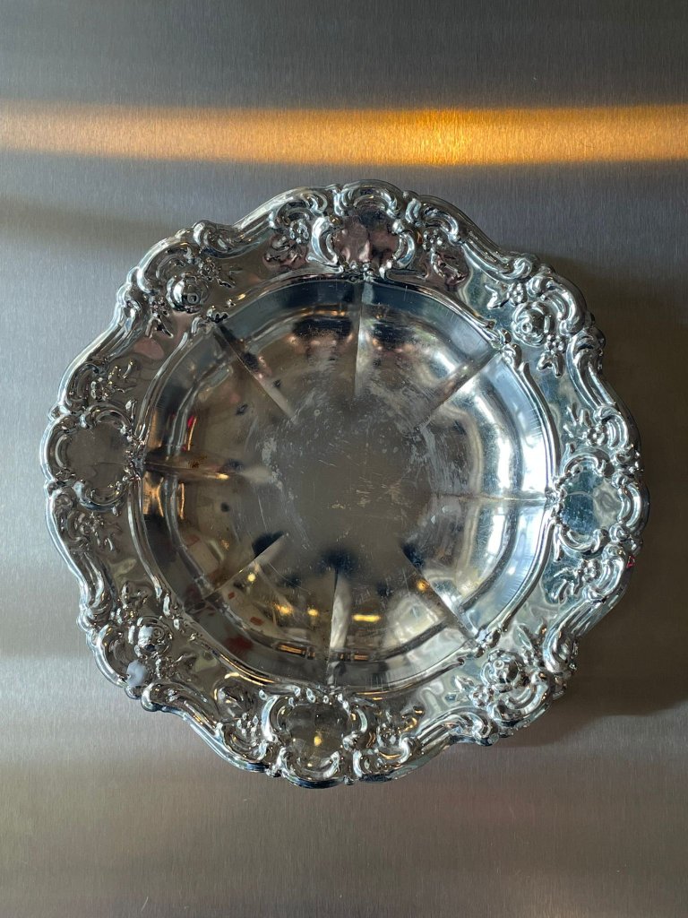 קערת מתכת מצופה כסף בעיטור רוקוקו